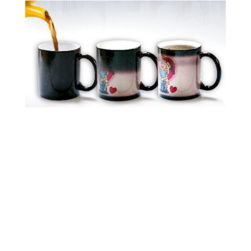 -magična šalica je izvana crne boje te kada se u nju ulije topli napitak počinje mjenjati boju,nestaje crna boja te se pojavljuje željena slika ili natpis.Kada se šalica ohladi ,šalica ponovo postaje crna izvana te slika ili natpis ostaje skriven ispod boje